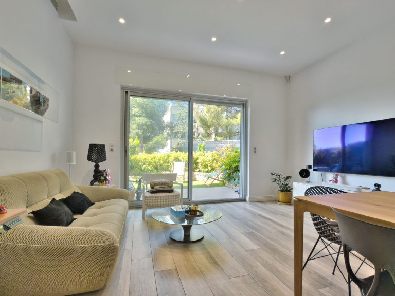 Cet appartement climatisé se compose d’un bel espace de vie lumineux ouvrant sur un rare jardin privatif de plus de 60 m², offrant un cadre de vie paisible et verdoyant, idéal pour recevoir ou profiter de moments de détente en extérieur.