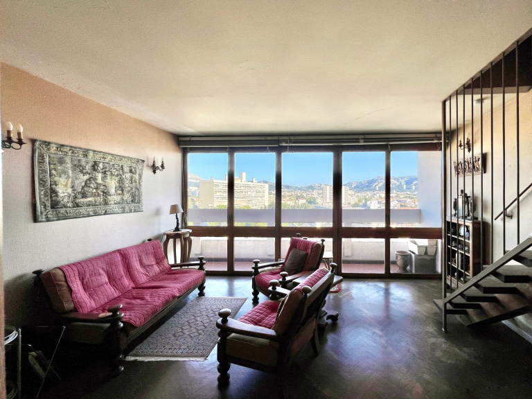 DUPLEX T3 - Dans une copropriété labellisée Patrimoine du XXème siècle - Le Brasilia - de l'architecte Fernand BOUKOBZA située au coeur du quartier de Saint-Giniez, fermée et sécurisée par des gardiens jour et nuit. Venez découvrir ce magnifique duplex traversant, baigné de lumière de type 3 de 66 m² (79 m² au sol), et offrant une balade visuelle de Marseille avec une vue sur la ville et les collines d'un côté, et sur Le Corbusier et les collines de La Pointe Rouge de l'autre. 1er niveau : la pièce à vivre et l'espace cuisine ouvert et aménagé, profitent d'une luminosité incroyable. L?escalier suspendu en bois, avec ses marches aériennes. 2ème niveau : Ici, 2 grandes chambres, dont une avec balcon vue sur Le Corbusier et les collines de la Pointe Rouge, une salle de bain, un dressing et wc séparé. Parquet massif d'origine pose en chevron couleur miel sur les 2 niveaux ! Une cave complète ce bien. Ascenseurs, chauffage, parking et local à vélos collectifs. Situation : à 2 pas du Parc Borely, du Jardin de la Magalone, du jardin d'enfants du Corbusier et proche de toutes les commodités : boulangerie, Picard, boucherie, banques, traiteur Italien ... En bas de la résidence : crèche municipale, école maternelle et primaire Grand St Giniez ! Transports en commun : métro rond point du prado + lignes de Bus + vélib On aime : sa double exposition, sa vue dégagée, et son parquet d'origine pour les amoureux d'architecture ! Une vraie vie de quartier au sein d'une résidence humaine et chaleureuse. Contactez : - Elena SUAREZ : 07 82 82 08 12 / elena.suarez@kwfrance.com - Marine BERNARD HERVE : 06 34 61 77 55 / marine.bernard-herve@kwfrance.com - Jean-Charles VIGNOLI : 06 26 57 26 58 / jean-charles.vignoli@kwfrance.com RSAC : 849 913 868 Référence annonce : JCV-3010 Consommation énergétique : C Émission de gaz à effet de serre : C Pas de procédure en cours Nombre de lots : 220