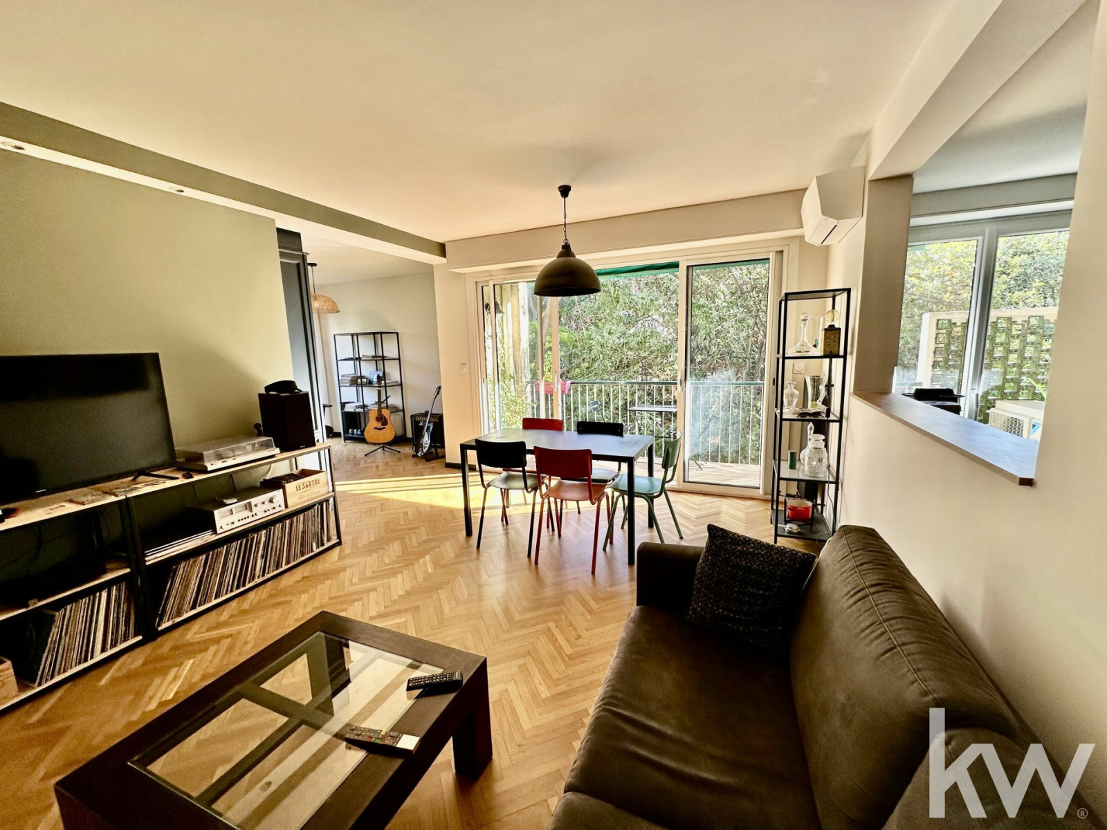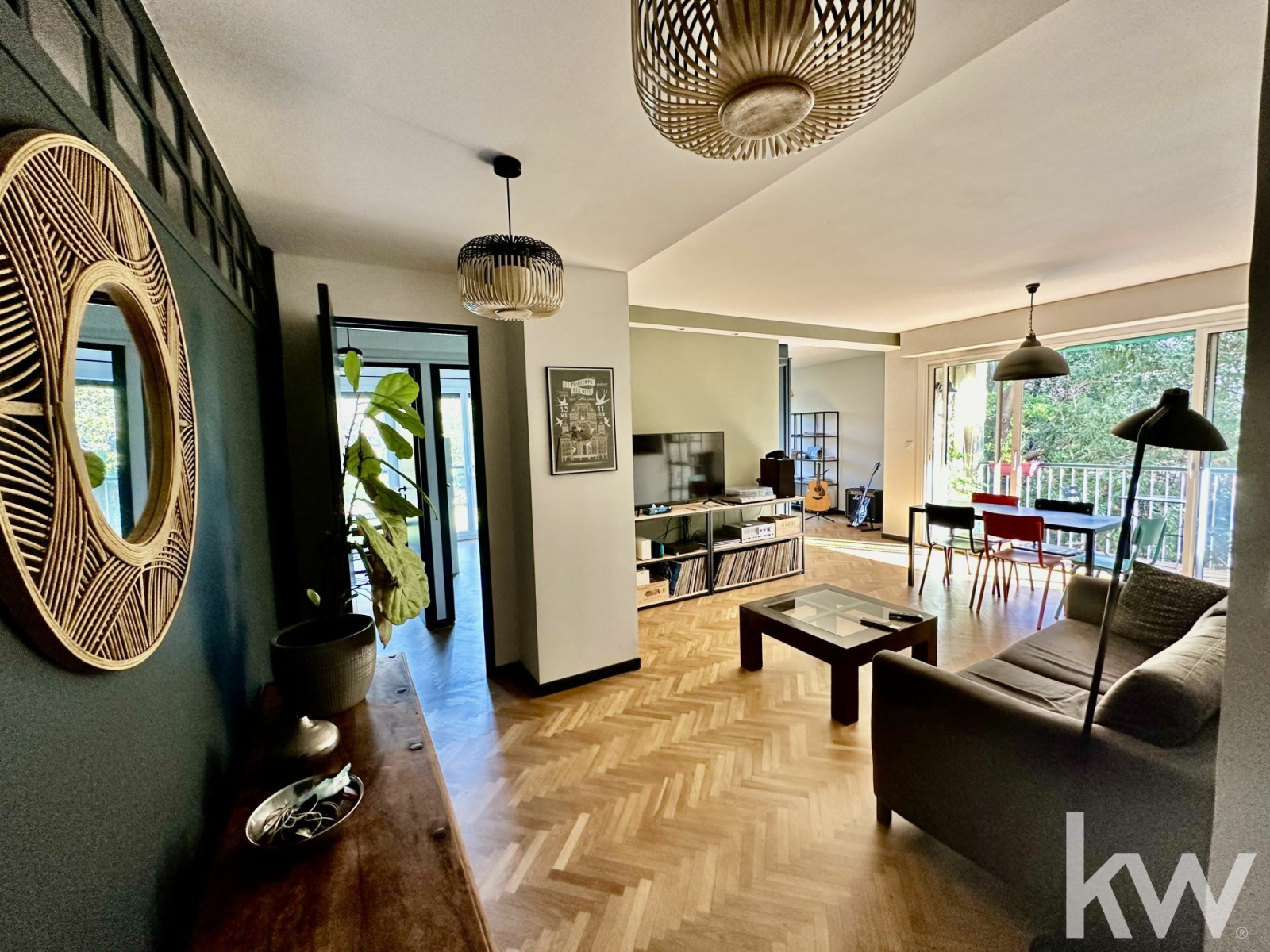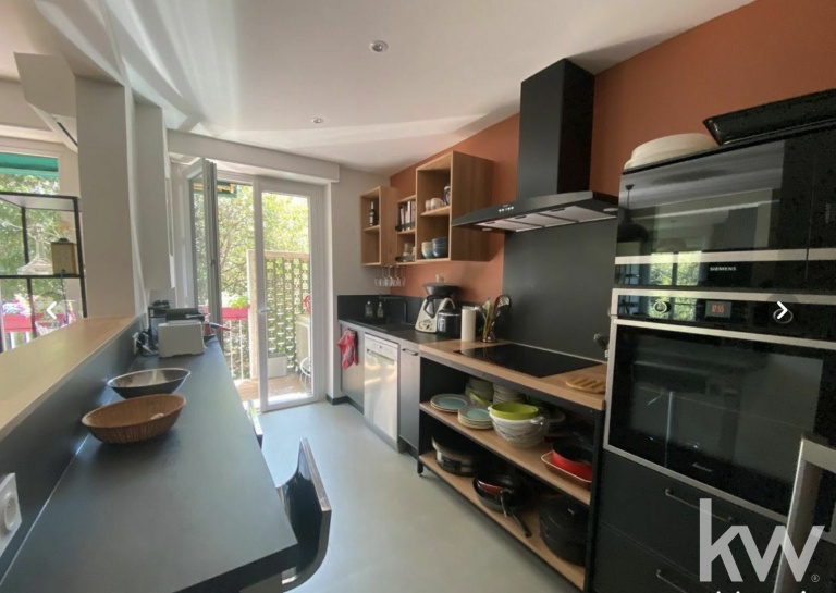 APPARTEMENT 5 PIÈCES 13008 ST ANNE / BONNEVEINE Au sein d'un écrin de verdure, venez découvrir cet appartement de 5 pièces de 99 m² avec balcon au 1er étage sur 3 d'une belle résidence au calme. Entièrement rénové sur les conseils d'une décoratrice, il dispose d'un magnifique parquet en point de Hongrie, de peintures mates tendance qui lui donne une touche très chic et contemporaine. L'espace nuit se compose de trois chambres, 11,76 M2, 11,39 M2, 10,78 M2 chacune équipée d'un placard, de la climatisation et volet roulant électrique, une salle d'eau et un dressing avec rangement complètent cette partie. Pour les espaces jour, une cuisine semi-ouverte sur un beau salon et un bureau pouvant faire office de salle à manger indépendante, de coin tv/jeux vidéos ou encore de quatrième chambre et un wc avec meuble vasque. Un joli balcon s'ouvre sur la végétation. Vous l'aurez compris cet appartement s'adaptera facilement à votre famille et vous pourrez ainsi emménager dans du neuf sans les contraintes de travaux réalisés très récemment. En plus de la climatisation dans toutes les pièces, toutes les menuiseries ont été changées avec volets automatisés et un réseau ethernet RJ45, idéal pour les télétravailleurs équipent l'appartement. Pour conclure, vous bénéficierez d'une cave, d'un local à vélo et de facilités de stationnement au sein du parc qui se situe à 10 mn à pied de la mer (150 M). Plusieurs commerces dont un centre commercial avec un hypermarché, cinéma, poste, pharmacies, musées et parcs sont accessibles à pied. Des écoles de tous niveaux publiques et privés sont implantées à moins de 10 minutes à pied, tout comme deux crèches. Niveau transports en commun, on trouve cinq lignes de bus dans un rayon de 1 km (22,23, 44, 45, 46, 19). Quatre autoroutes à proximité et la station de métro Rond-Point du Prado est la plus proche. Pour un premier échange ou visite, contactez votre agent immobilier KELLER WILLIAMS PRADO EUROMED Georgia TETELBOM 06 61 83 45 41 georgia.tetelbom@kwfrance.com Agent commercial Rsac : 913852042 TETELBOM Georgia E.I.Marseille