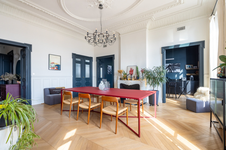 Parquet en point de Hongrie, moulures délicates, cheminées en marbre, hauteur sous plafond de plus de 3,80 m… Ce bien conserve l’âme et le prestige de l’haussmannien, sublimés par une rénovation élégante aux touches contemporaines.