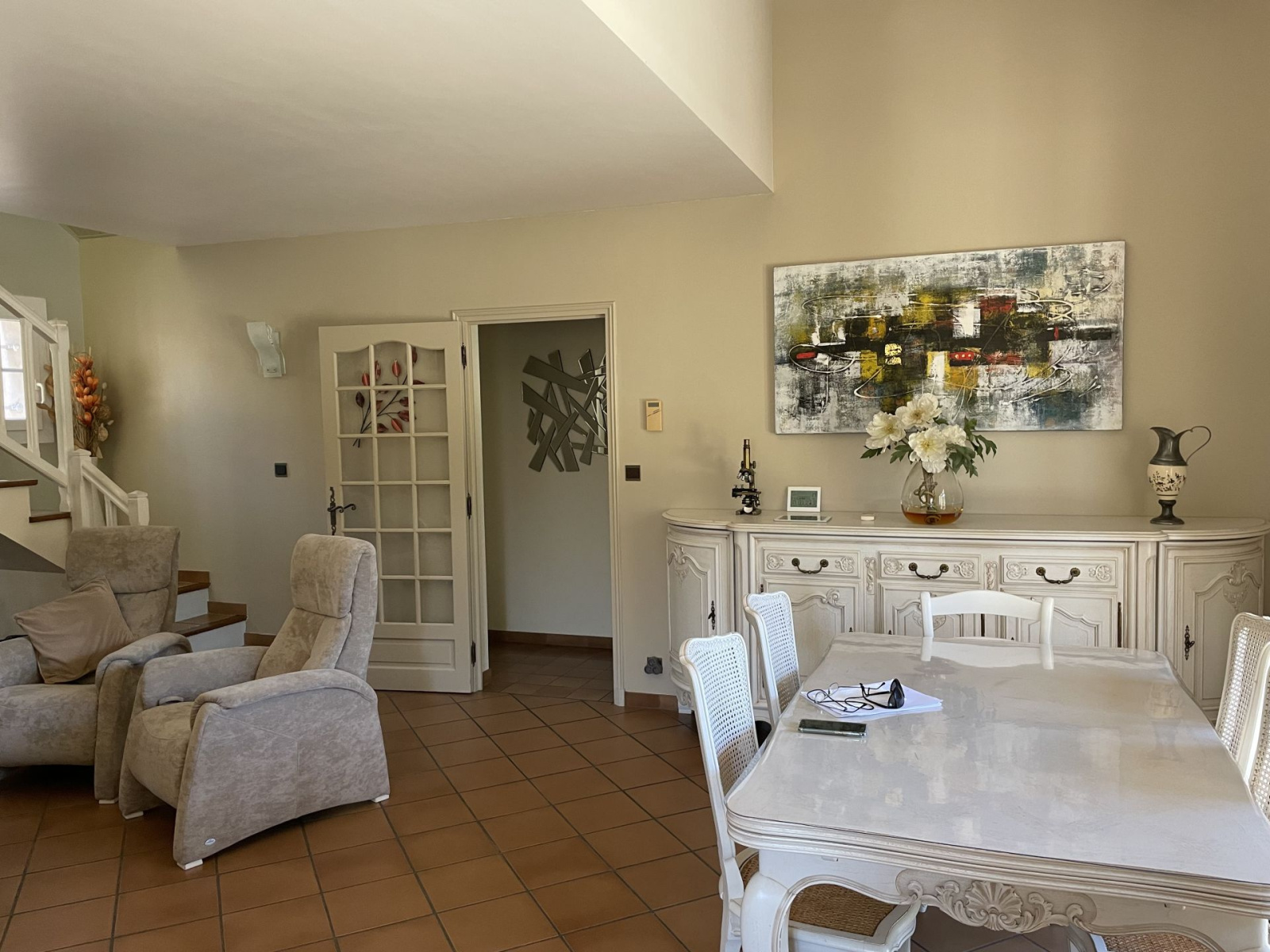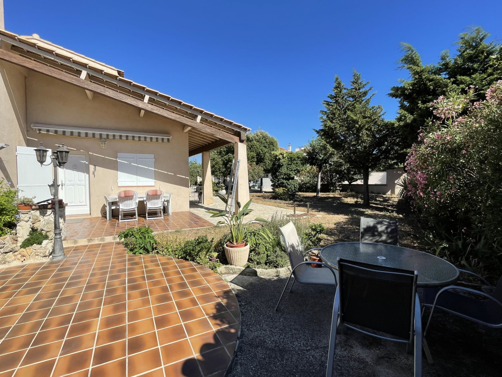 En vente : KW PRADO vous propose à la vente dans le 14e arrondissement de Marseille (13014), à Ste Marthe, cette jolie villa traditionnelle T4 de 101 m2 sur son terrain arboré et paysagé de 1200 m2 avec piscine. Côté intérieur, trois chambres, dont deux de plain pied, grande salle d?eau, toilettes séparés, salon séjour, cuisine équipée encore sous garantie. A l?étage, une suite parentale avec salle d?eau et terrasse. Accessible par un chemin privatif et sécurisé, vous disposerez de deux garages et de nombreuses facilités de stationnement et de rangement. Vous serez séduit par le calme ambiant qui vous permettra de profiter d'un jardin parfaitement entretenu, d?une piscine aux généreuses dimensions 11 x 5 m, de sa terrasse solarium et sanitaires, de sa cuisine d?été avec four à bois, rendant la maison idéale pour vos réunions familiales. Le charme provençal d'une maison confortable sans travaux, équipée de climatisation et double vitrage, à deux pas des autoroutes A7 et A55, commerces et écoles. Contactez votre agence KW PRADO pour plus de renseignements sur cette maison à vendre dans le 14e arrondissement de Marseille. Georgia TETELBOM / RSAC N° 913852042 Tél : 06.61.83.45.41 georgia.tetelbom@kwfrance.com
