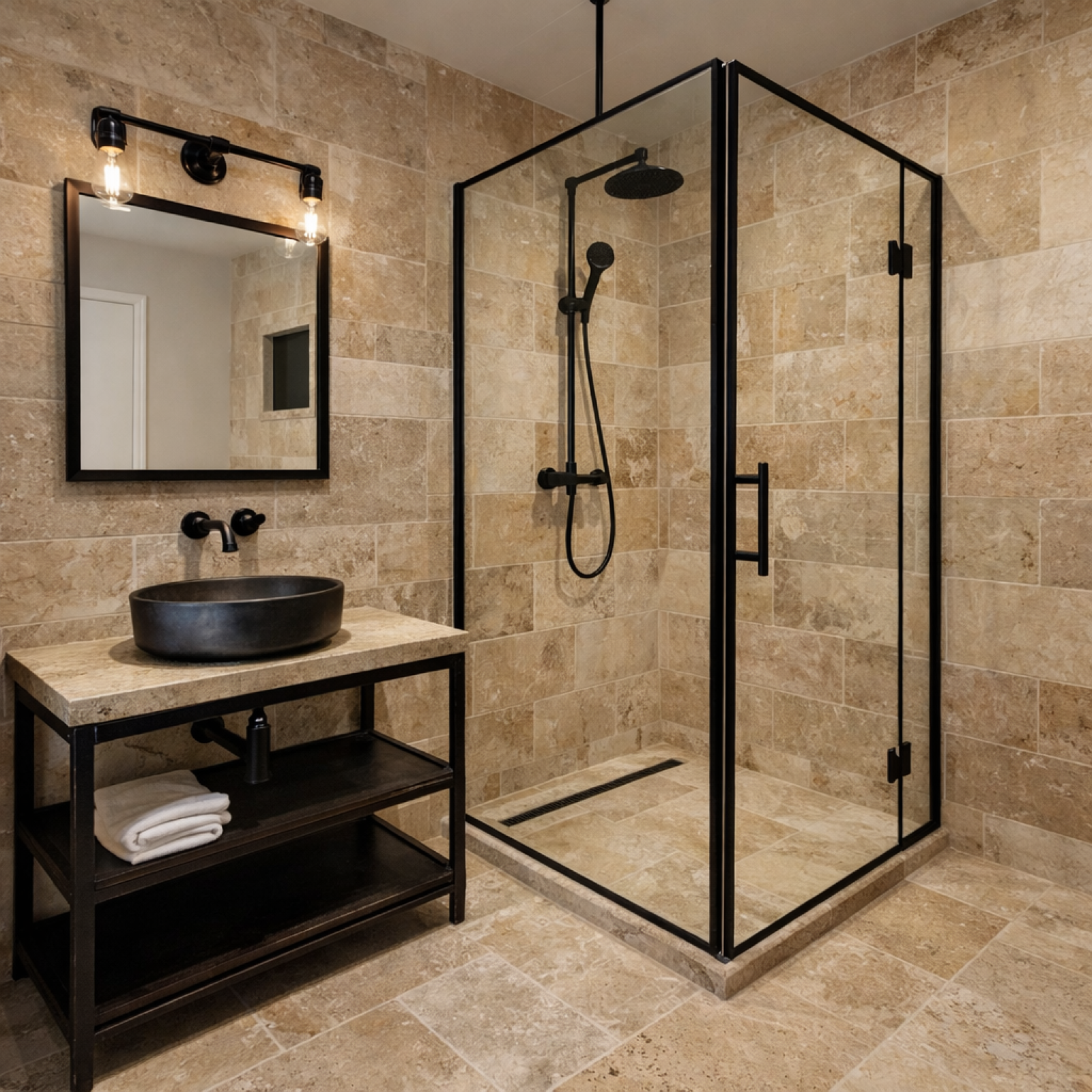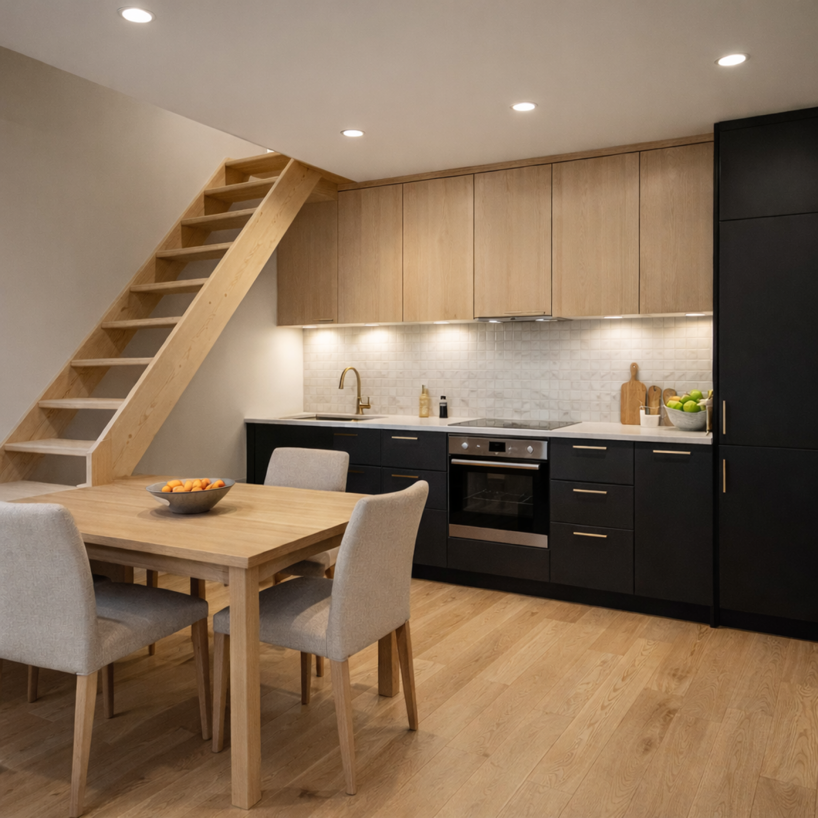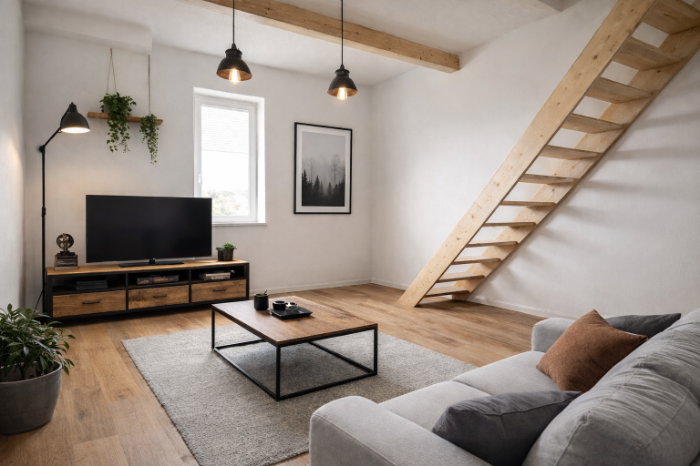 À l’étage, en mezzanine, vous découvrirez une seconde chambre, idéale pour un espace nuit, un bureau ou une chambre d’appoint.