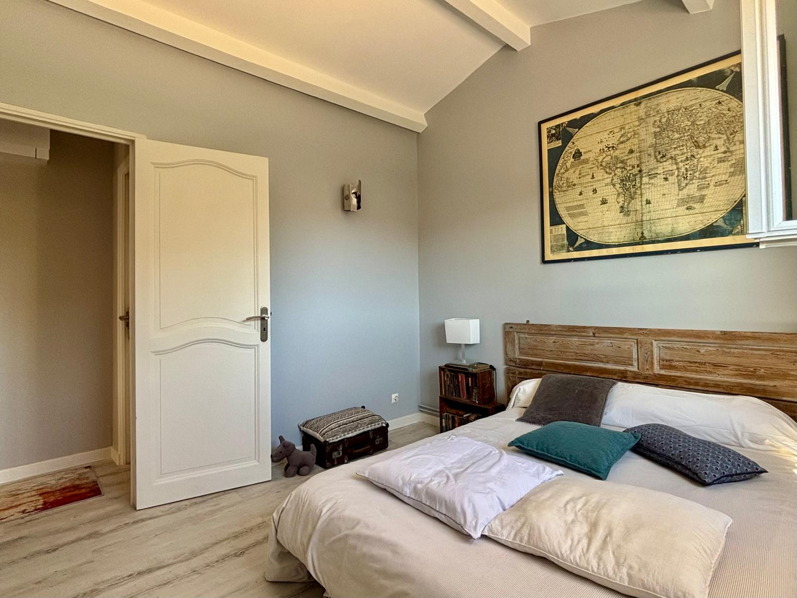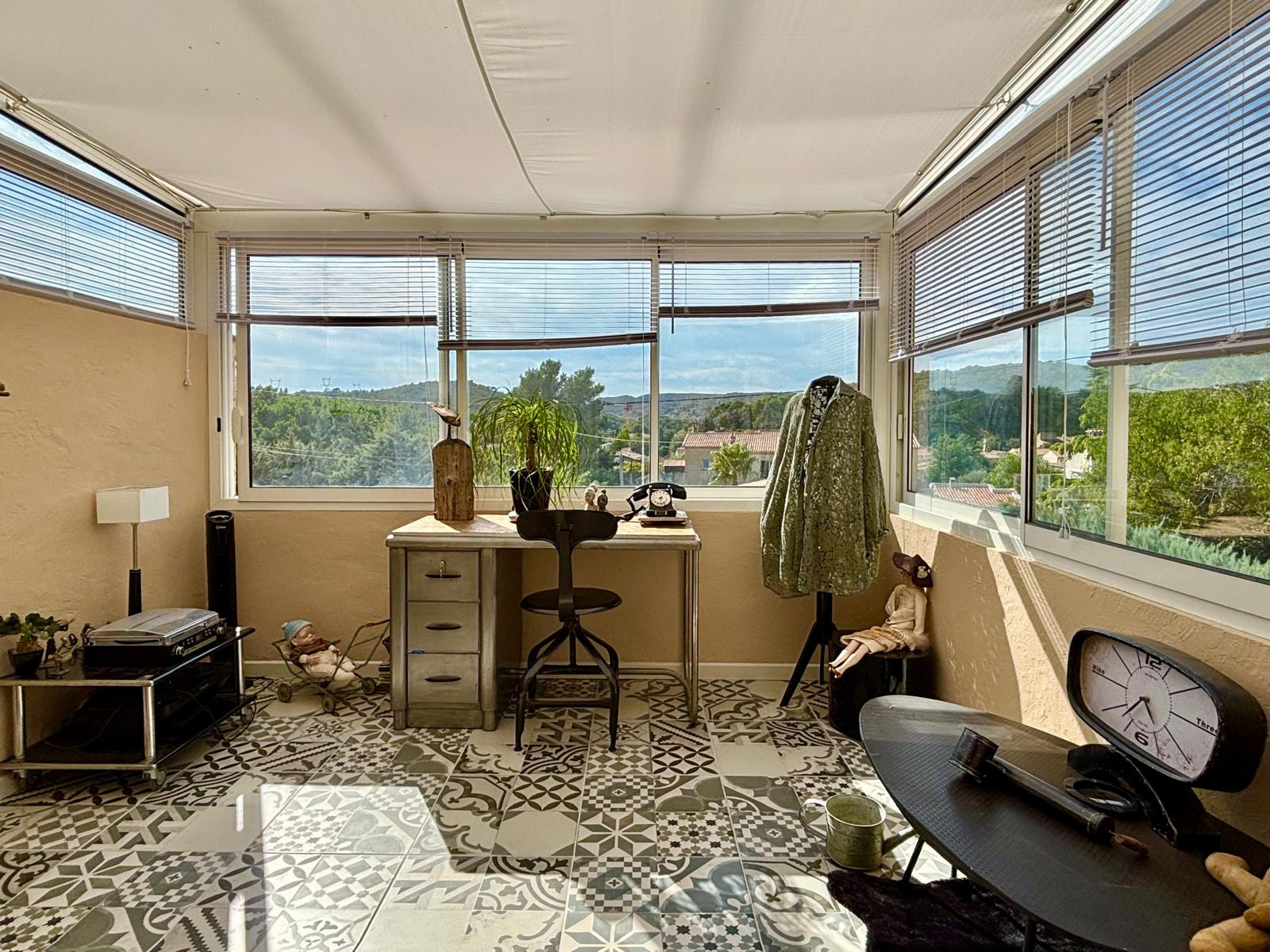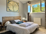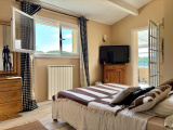 A l'étage, vous trouverez 2 chambres, une véranda faisant office de bureau avec une vue panoramique sur les collines ( respectivement 10m2, 13m2 et 9m2) ainsi que des WC.