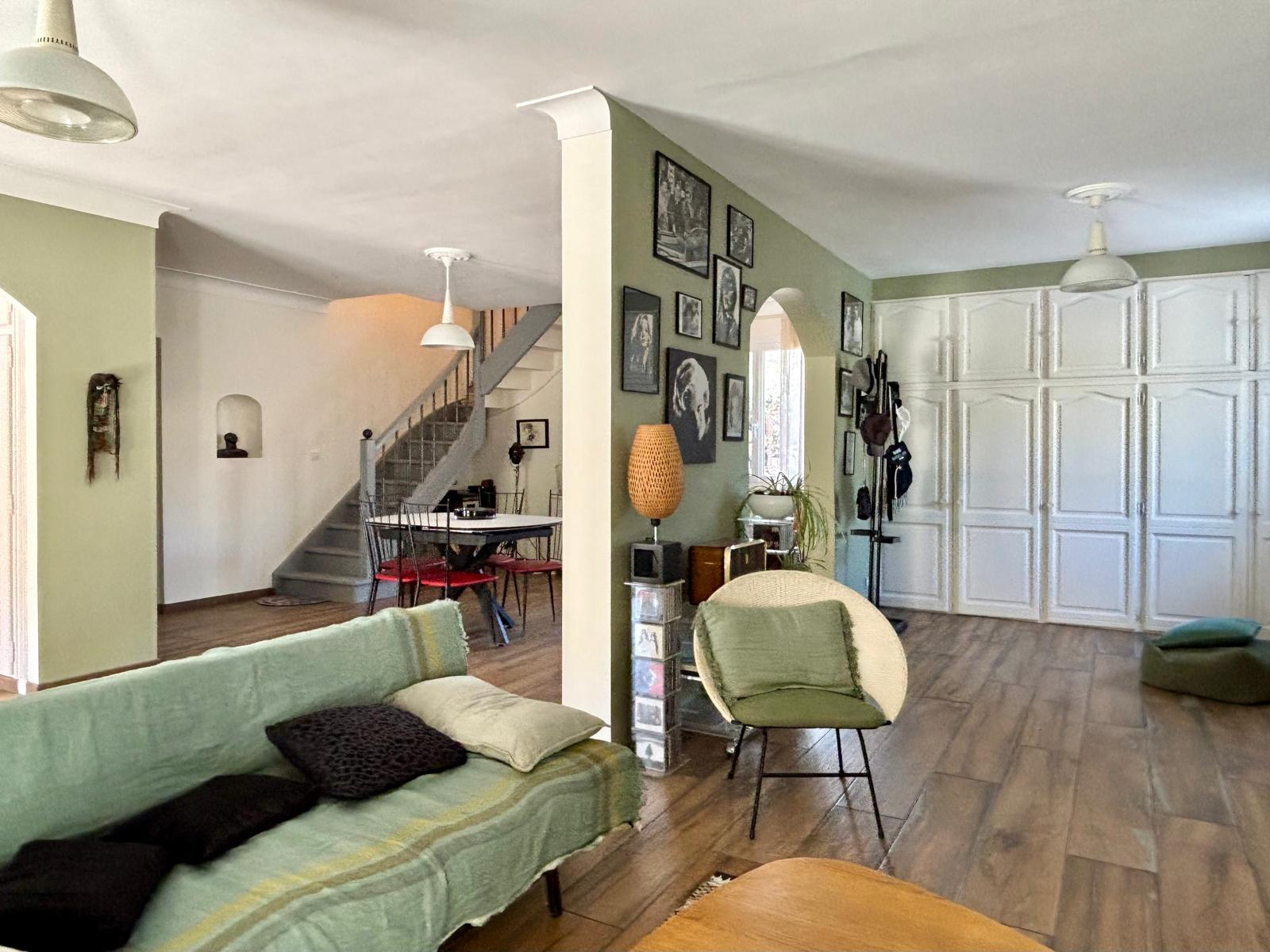 Au RDC, par un hall d'entrée spacieux, vous accedez à une pièce de vie de 53m2 ouvrant sur la terrasse au SUD, composé d'un double salon avec cheminée à insert et d'un séjour.